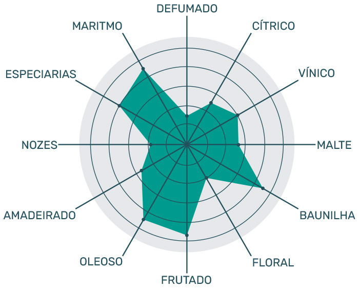A primeira sensação que vem ao servir a taça é de que acabamos de servir um vinho de Jerez PX, muito adocicado, com tâmaras e caramelo. Depois de alguns instantes o doce fica bem menos pronunciado e consegue-se perceber aromas mais típicos dos whiskies da destilaria. Cítrico de casca de limão siciliano, um frutado que lembra laranja e algo tostado que lembra açúcar queimado.