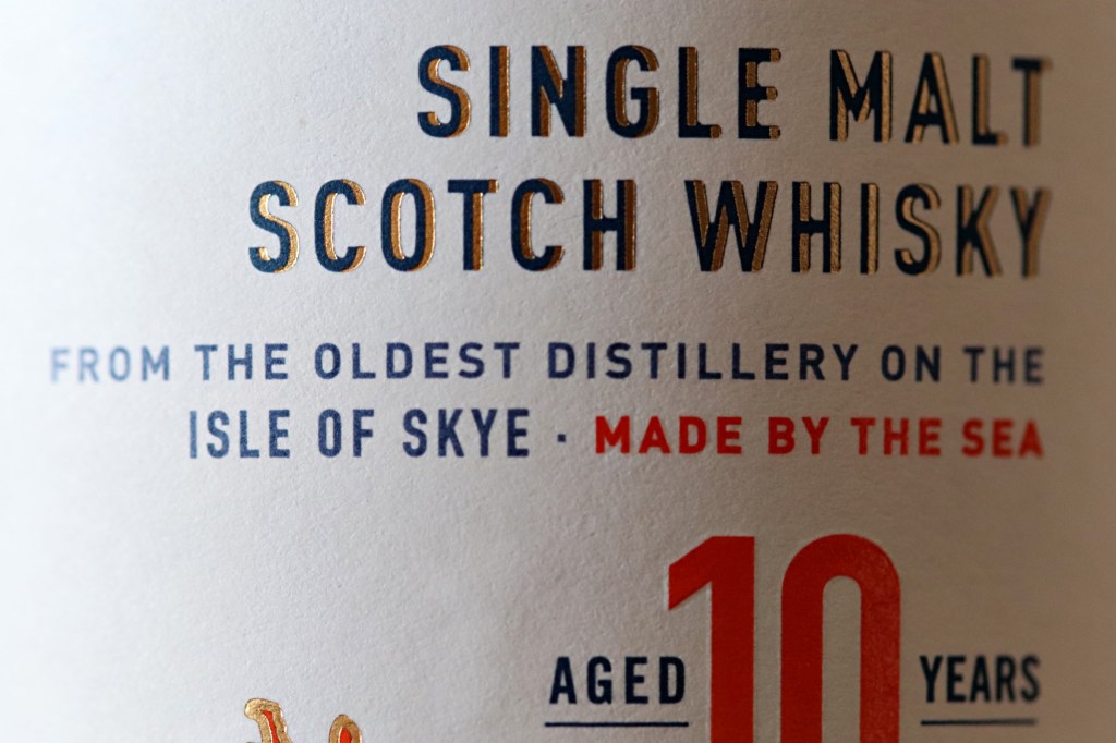 A primeira afirmação da marca morreu em 2017 com a inauguração da destilaria Torabhaig. Ela foi substituída por “The Oldest Distillery on The Isle of Skye”, não dá pra dizer que não são criativos. A segunda afirmação e, talvez, a mais sutilmente estranha, “Made by The Sea” continua lá, agora em um tom vibrante de laranja. Mas até onde isso é totalmente verdadeiro?