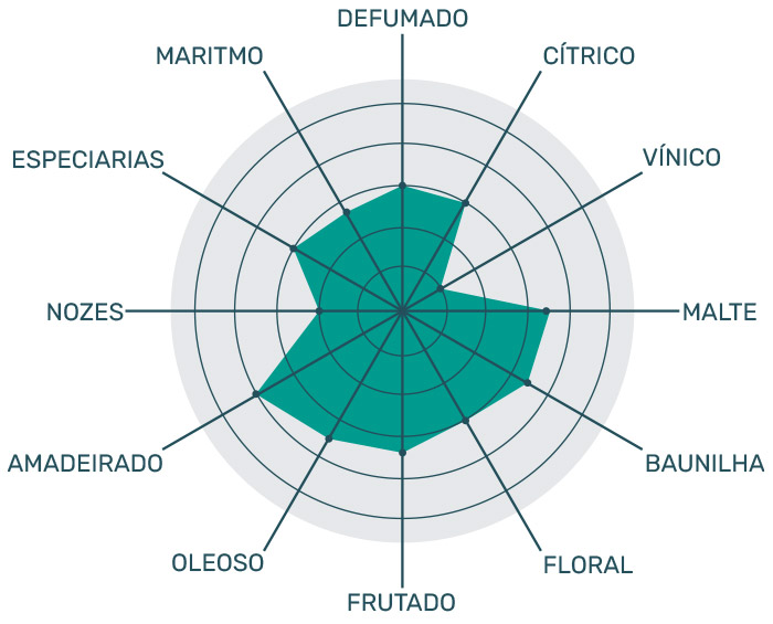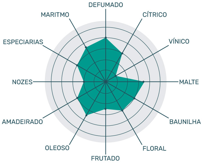 Aroma bem amadeirado, baunilha, caramelo, bem adocicado . A turfa está presente, porém mais discreta. O herbal fica quase imperceptível, assim como as notas marítimas. É um whisky mais comportado.