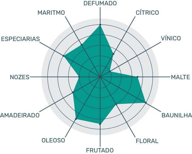 BOOM! De cara a turfa surge, esfumaçada, medicinal, iodada – lembra o cheiro de caixa de primeiros socorros antiga no meio de uma fogueira. Algo terroso e pantanoso, óleo de motor queimando, algas marinhas e ban-aids, de repente, algo fresco e doce, baunilha e toques de limão. Quando se acostuma com a turfa surge caramelo, peras e açúcar mascavo. Tudo muito equilibrado e elegante e violento. Notas verdes e de malte ao fundo.