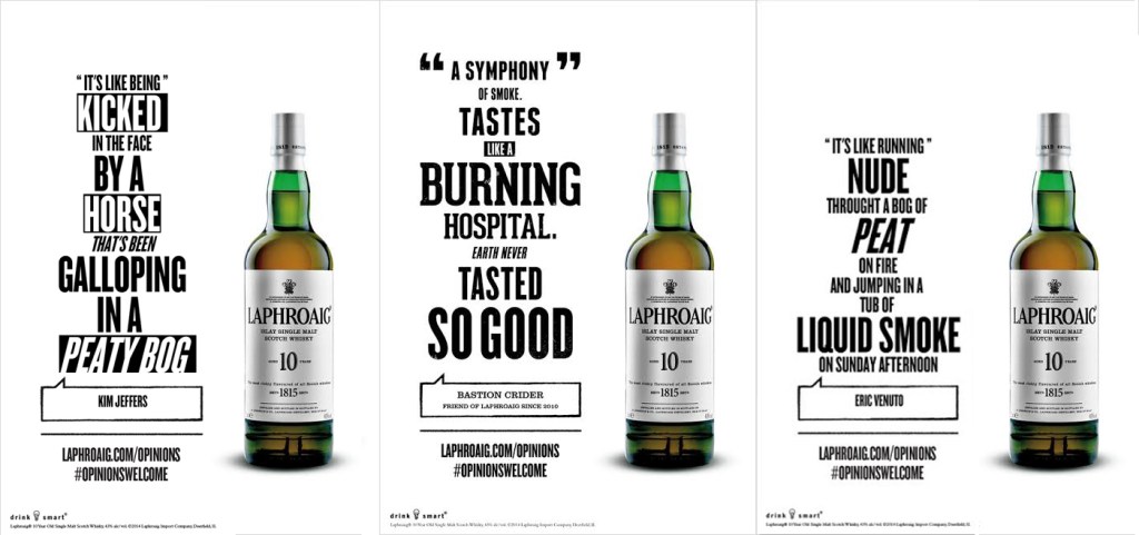 Antes de mais nada, ele de fato é untuoso e opulento, é quase um whisky carnudo, se é que tal coisa exista, e é defumado e marítimo e cítrico. Ao beber você consegue evocar imagens de um cinzeiro sujo, de pântanos e algas marinhas e isso tudo pode ser traduzido por uma campanha que a destilaria lançou há algum tempo: