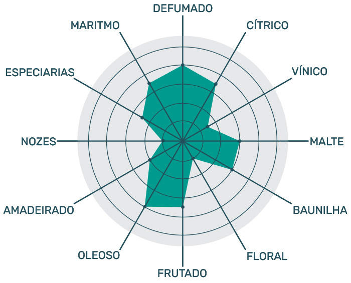 Média a longa, de boa complexidade. Herbal, frutado e que deixa a boca coberta por bastante tempo. A sensação da turfa é longa e é muito bem balanceada com o frutado.