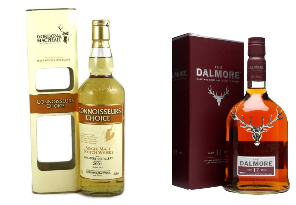 Perdão, mas nós não pensamos assim. Dê uma olhada nas duas garrafas abaixo. Ambas são single malts da mesma destilaria, a Dalmore.