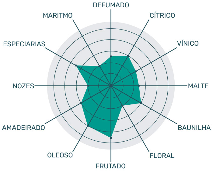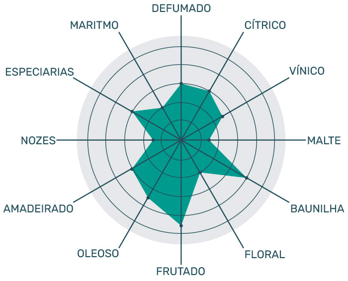 Doces e florais, levemente defumado. É possível perceber toque sulfurosos nele, levemente salgados, mas o cítrico do limão e o doce de mel e frutas tropicais logo o apagam. Ao fundo, bem sutilmente, é possível notar especiarias, caramelo, café e couro.