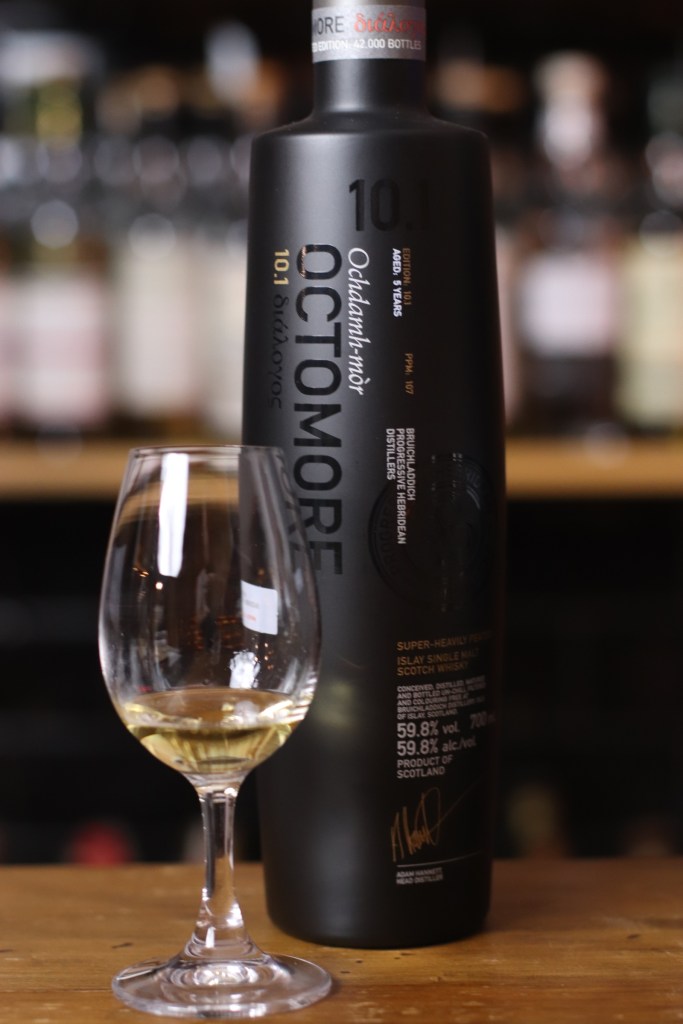 Todo ano a Bruichladdich lança pelo menos três versões diferentes de whiskies da linha Octomore. O primeiro número, antes do ponto, se refere à edição anual daquele whisky. Por exemplo: o Octomore 01.1 foi lançado em 2008 e foi elaborado com o primeiro whisky super heavily peated produzido pela destilaria, lá em 2002. Já o Octomore 14.1, o mais atual, foi lançado em 2023 e utiliza whiskies que foram destilados em 2017.